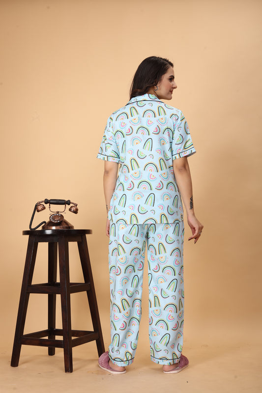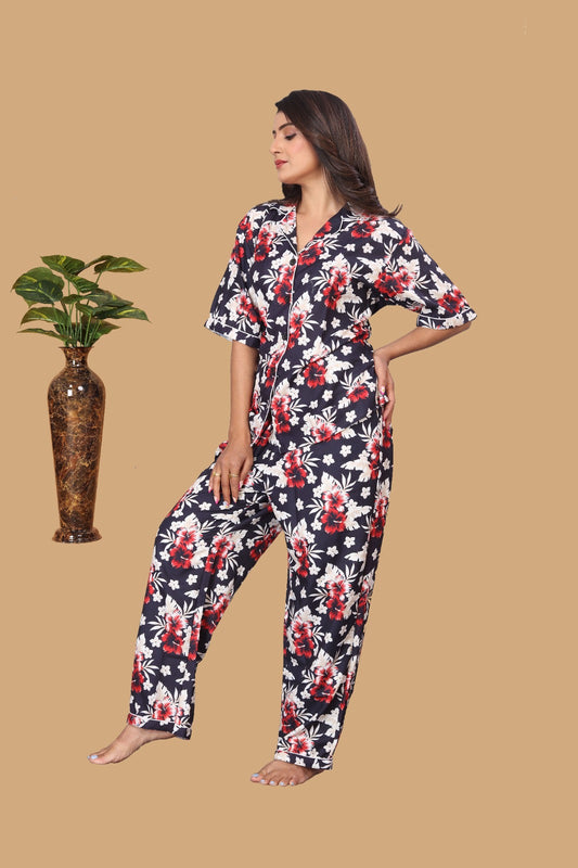 WHITE RED FLOWER PRINT NIGHT SUITE